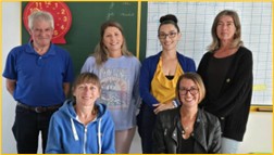 Noémie Fergus, Atsem PS-MS ; Hugo Vermesse, directeur et enseignant pour les CP-CE1 ; Sophie Chausse, Atsem MS et GS et périscolaire ; Pauline Rolland, agent territorial pour la cantine et les trajets en car ; Lætitia Lorenti, enseignante déchargeant Hugo Vermesse et d’Alicia Masson, enseignante MS-GS ; et Stéphanie Roussel, enseignante en TPS et PS. Janine Lejanvre, Maire.